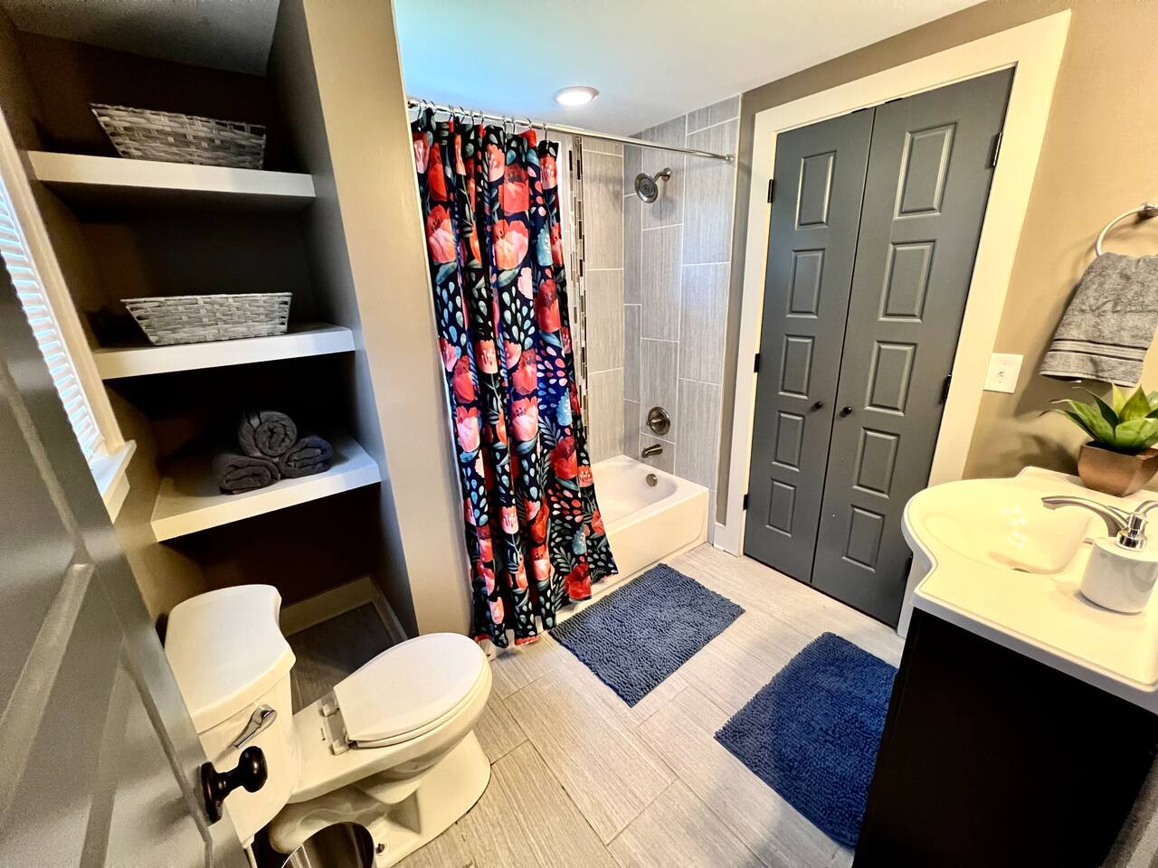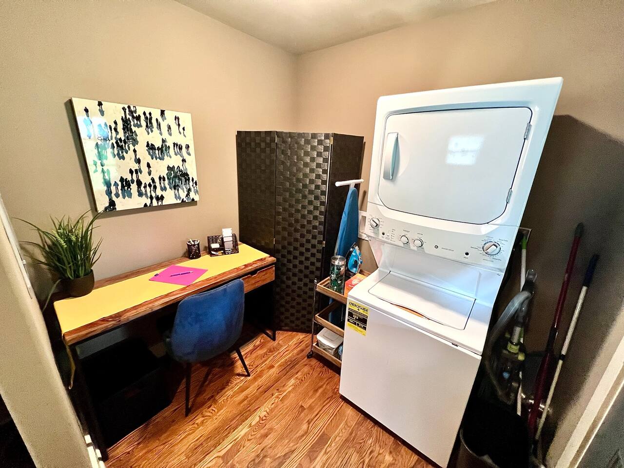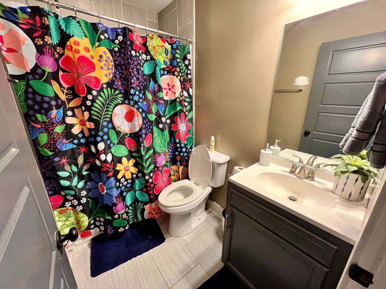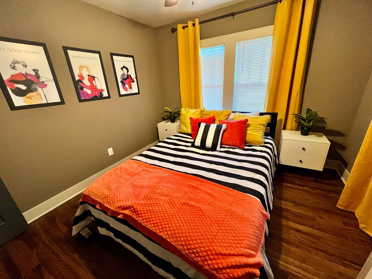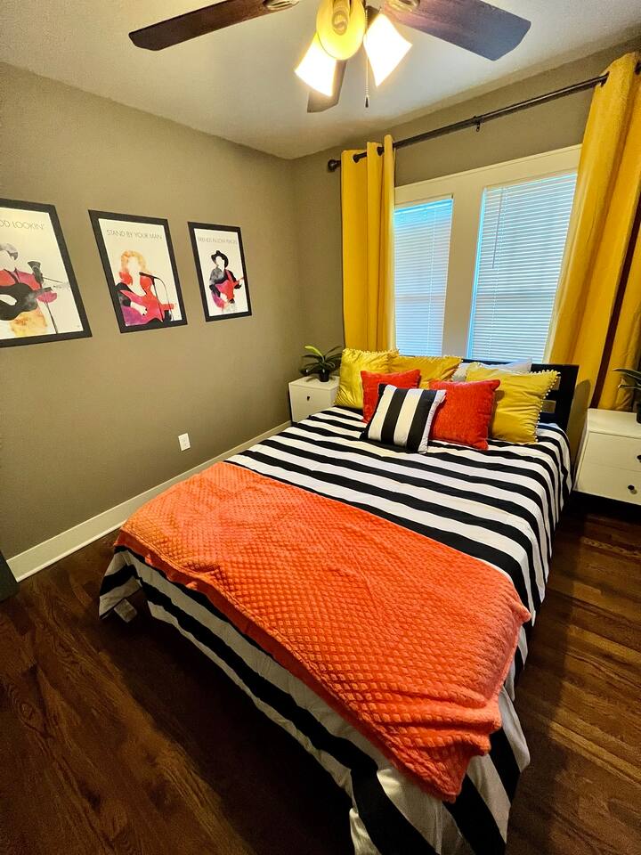 Welcome to "Wildflowers on Raymond," a charming two-bedroom, two-full-bath house that pays homage to the one and only Dolly Parton. With queen-size beds in both bedrooms, this cozy space is perfect for up to six guests. The master bedroom boasts an en-suite bathroom with a tub/shower combo, while a second hallway bathroom also has a tub/shower combo. Looking for extra sleeping space? Both couches in the living area convert to full-sized futons for added comfort. The kitchen is fully equipped with everything you need to cook up a storm, so feel free to channel your inner Dolly and whip up your favorite Southern-inspired dish. And no need to worry about bringing your own linens or paper products - we've got you covered. In addition to all of these great features, "Wildflowers on Raymond" also includes a laundry area and a small desk space, perfect for catching up on work or staying connected during your stay. The bright and funky decor is sure to put a smile on your face, and the neon sign is the perfect backdrop for those Nashville selfies you'll want to post on social media. So come stay with us and immerse yourself in the spirit of Dolly at "Wildflowers on Raymond"!