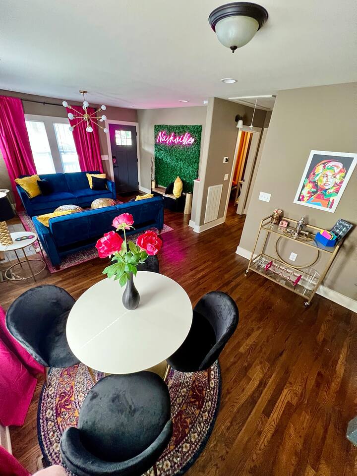 Looking for a vibrant and exciting stay in Nashville? Look no further than this adorable house hosted by Hartline Hospitality that sleeps 6! Perfect for bachelorette parties and girls' weekends, this house is located just 5 miles from downtown and offers a fully equipped kitchen with all the essentials provided. Relax on the covered outdoor porch in the private fenced-in backyard, furnished with all new decor and furniture. We can't wait to share this fantastic space with you!